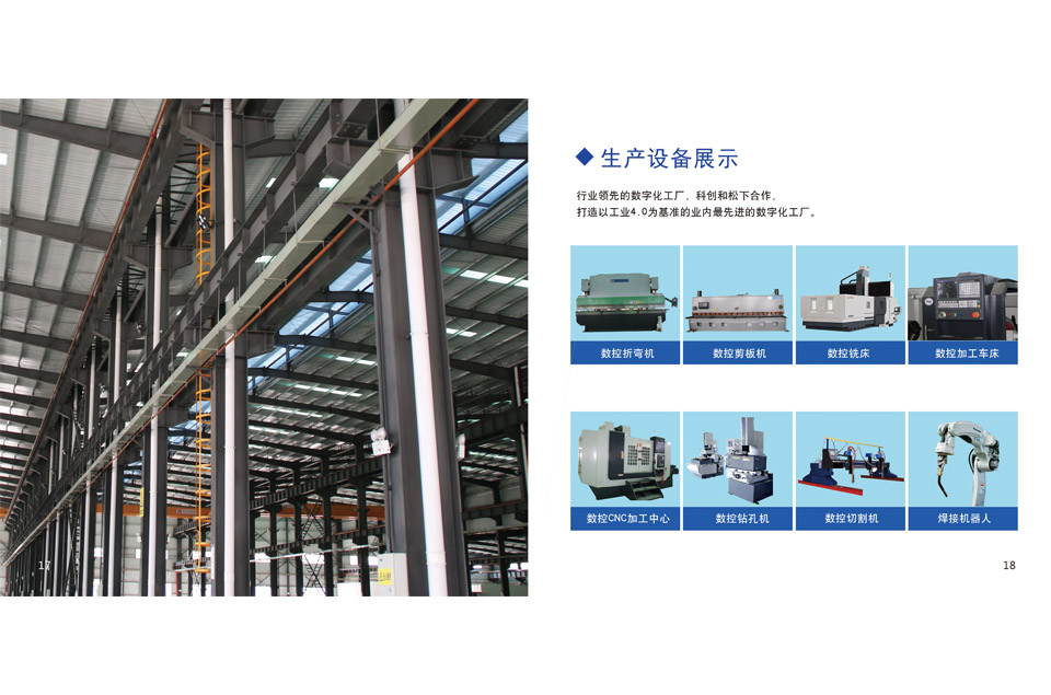 擁有研發(fā)測(cè)試中心、試制車間、制造車間、總裝車間和倉(cāng)儲(chǔ)物流、宿舍、辦公樓等配套設(shè)施。全數(shù)控動(dòng)梁龍門移動(dòng)式鏜銑床、定梁龍門鏜銑床、落地鏜銑床、三維鉆、加工中心及幾百臺(tái)各種機(jī)加工設(shè)備。