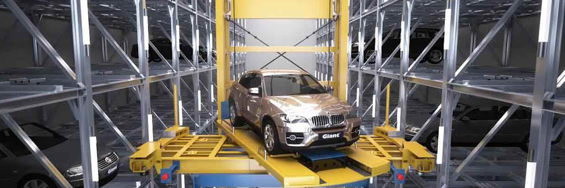 整個車庫的運行均由堆垛搬運機器人來完成。